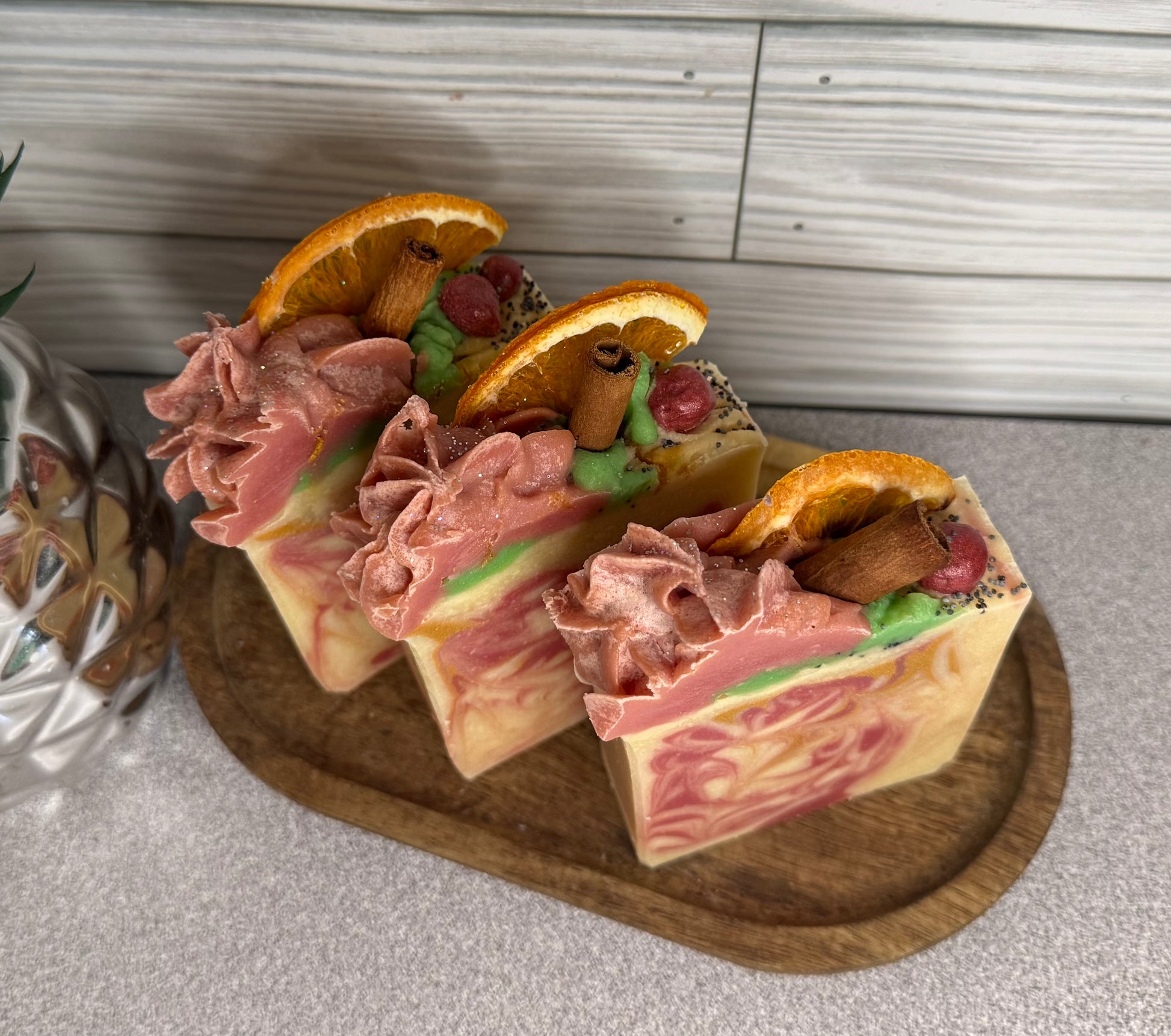 A warm and festive aroma. The tart and fruity notes of cranberry and orange zest with warm and comforting spices of cinnamon, nutmeg and ginger. This creates a cozy and inviting fragrance of the holiday season and wintertime that evoke a sense of warmth and cheer.